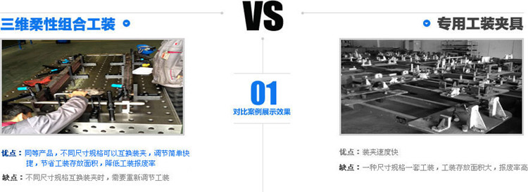三維柔性焊接平臺是一套由主體件孔系平臺和各種附件相配合的高精度,適應多種規格的產品完成快速裝夾的柔性化工裝。其優點在于可循環使用,快速定位裝夾,在立體的三維焊接平臺維空間可無限延伸拓展工作面積。