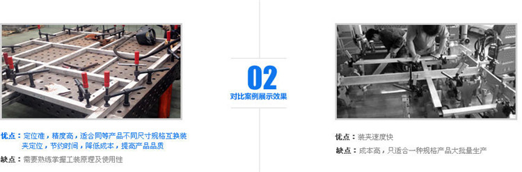 4、重復性:臺面有鑄鐵/鋼結構件/高精度加工件/模塊化組件組合而成,其性能非常穩定,如使用不當造成部件損壞時,也不用報廢整張臺,只要非常少的成本就可以更換單個部件。焊接平臺經過特殊加工處理,在焊接過程中,僅需低廉的防飛濺液即可免除工作臺表面的焊接飛濺。